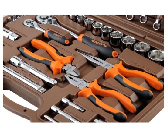 Другие инструменты/принадлежности длинногубцы, бокорезы, кардан шарнирный, вороток т-обр., ключ трещоточный с быстрым сбросом, удлинители, адаптер 3-х сторонний, головки свечные