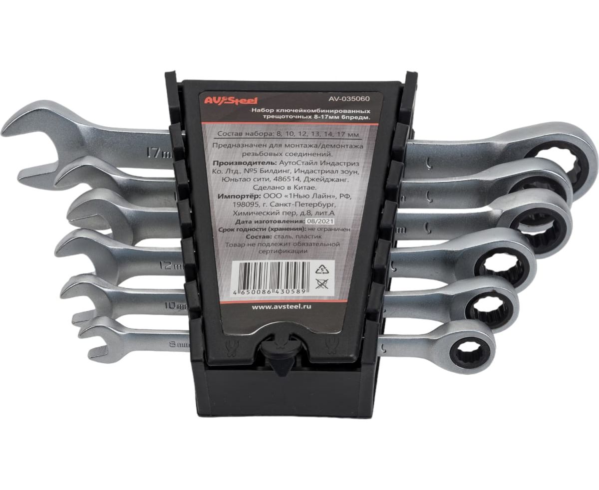 Набор ключей комбинированных AV Steel AV-035060 трещоточных 6 предм.