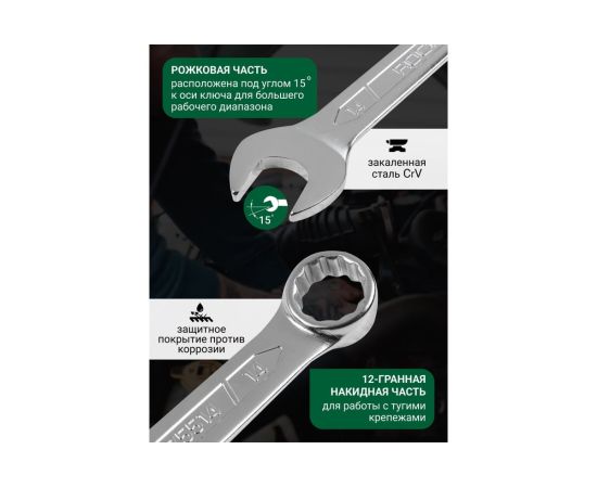 Набор ключей комбинированных, 16 предметов от бренда ROCKFORCE - ручной инструмент для работы с различными резьбовыми соединениями. Накидная часть применяется для работы с тугими крепежными соединениями, а рожковая применятся, если нет возможности накинуть ключ на соединение сверху - в таком случае можно работать с какой-то из сторон рожковым гаечным ключом.