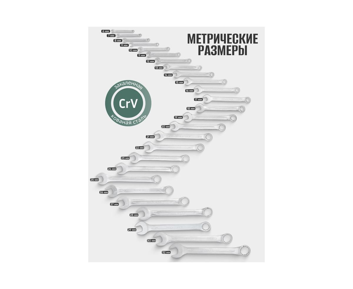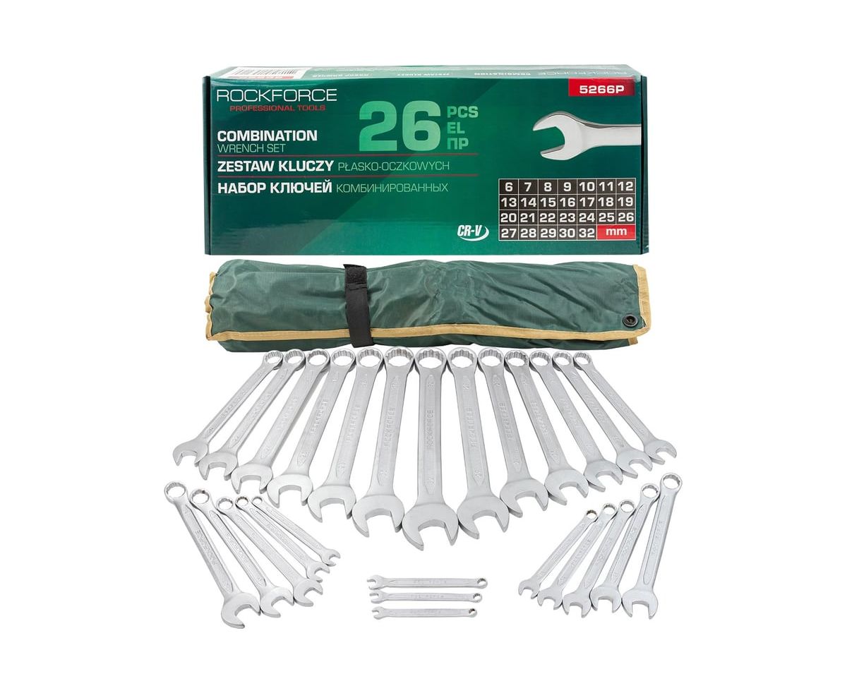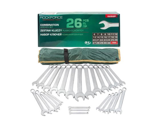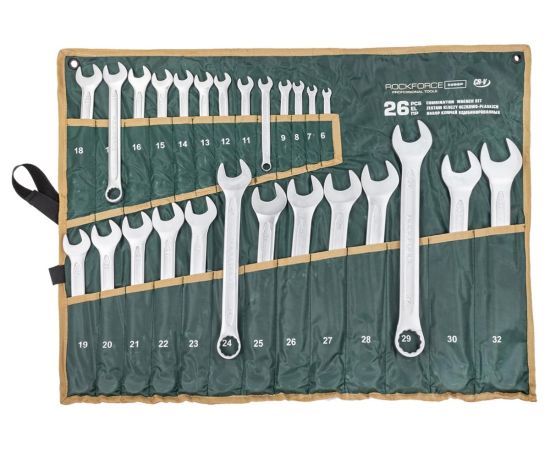 Набор ключей комбинированных Rockforce RF-5266P(17102) 15 градусов, 26 предметов (6-30, 32мм), на полотне