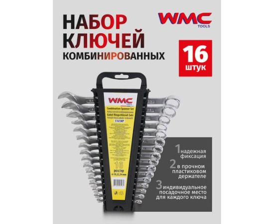Набор ключей комбинированных WMC TOOLS WMC-5161MP(50005) 16 предметов, в пластиковом держателе