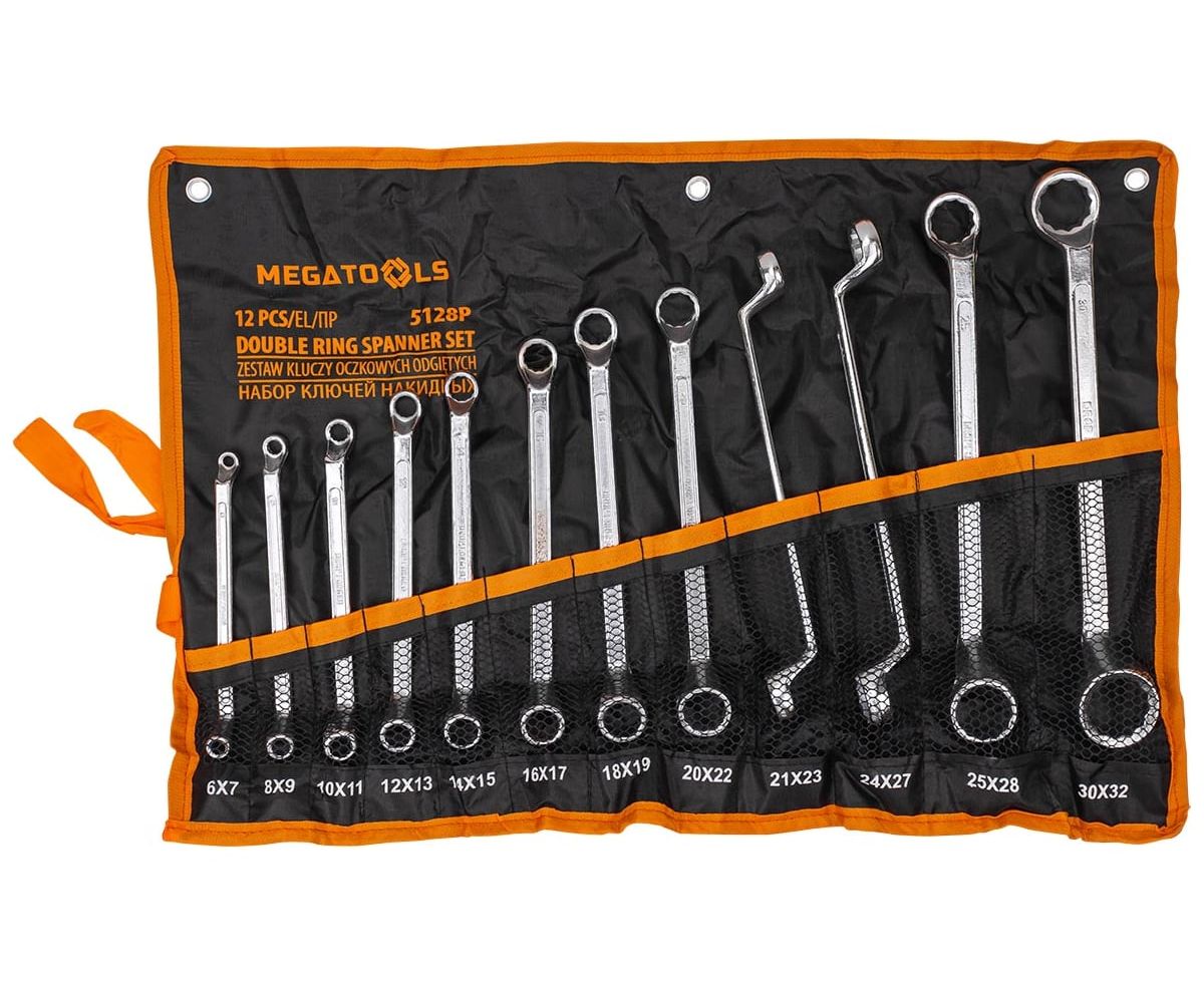 Набор ключей накидных MEGATOOLS MT-5128P(63054) отогнутых на 75 градусов набор 12 предметов