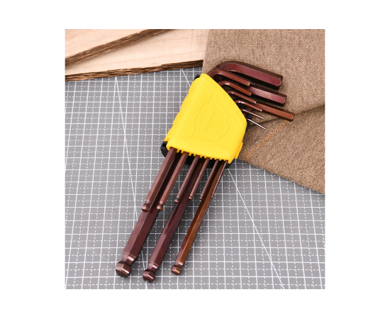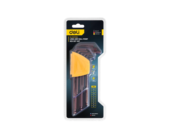 Набор ключей шестигранных Deli DL230709G с шаром удлиненных 9 шт S2, размеры 1,5,2,2,5,3,4,5,6,8,10мм, пластиковый держатель