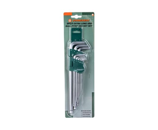 Комплект угловых шестиграников Jonnesway H06SM109S 47096 используется для откручивания и закручивания крепежей. В наборе под каждым инструментом написан его размер. Комплект состоит из девяти шестигранников.