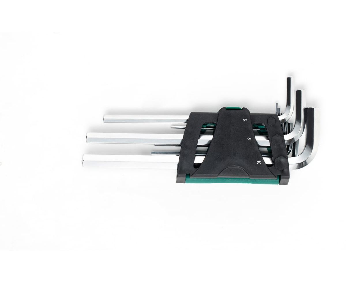 Набор длинных шестигранных ключей SATA модель 09107, включает в себя 10 предметов и предназначен для работы с винтами, имеющими внутренний шестигранный профиль. Г-образные ключи обеспечивают удобство и скорость при откручивании винтов, избавляя от лишних усилий.