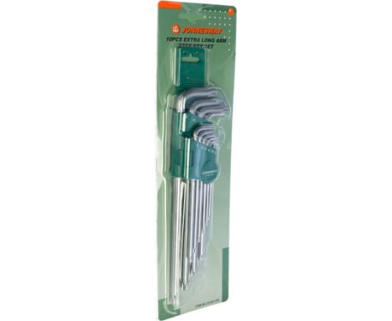 Комплект угловых ключей Jonnesway TORX EXTRA LONG H12S110S состоит из 10 предметов, изготовленных из S2 сплава. Применяется для закручивания и откручивания крепежа. Комплект удобно хранить в держателе, где каждый угловой ключ подписан.