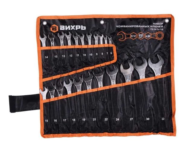 Набор комбинированных ключей Вихрь 73/6/5/15 22шт. 6-32 в чехле
