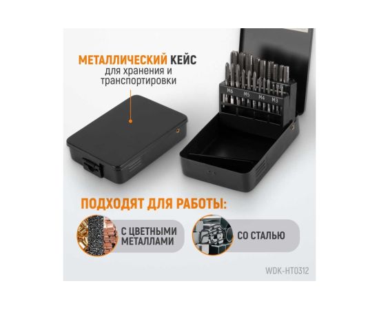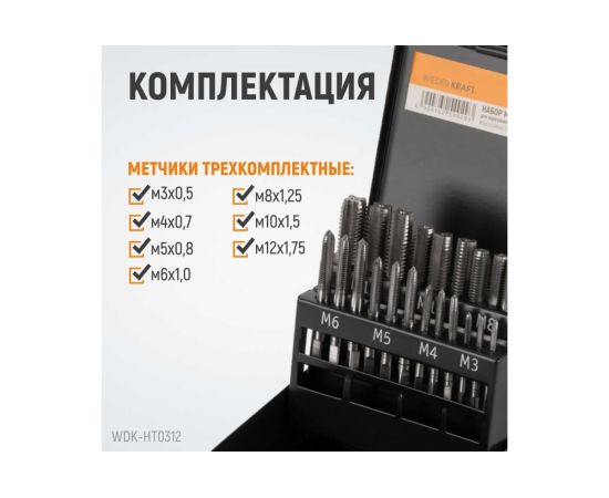 Набор комплектных метчиков WIEDERKRAFT WDK-HT0312 М3-М12 21 предмет