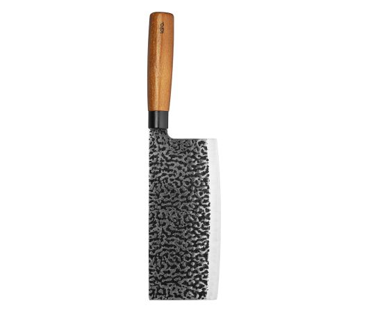 Удобная рукоять из темной древесины со стальным черным больстером придает дизайну ножа завершенный вид.