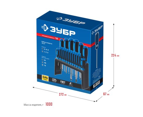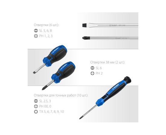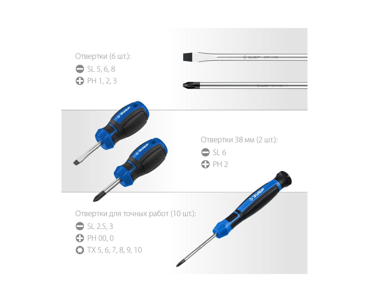 Набор отверток Зубр 25242 в компл. 18 предметов жесткий кейс