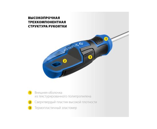 Отвертки оснащены специальной высокопрочной трехкомпонентной рукояткой.