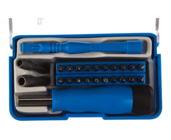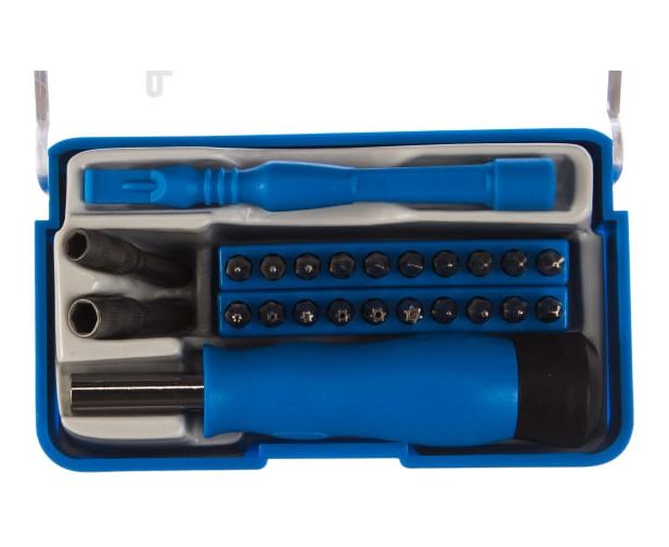 Отвертка для точных работ с насадками Зубр ПРОФЕССИОНАЛ 24 шт. 25648-H24 используется при ремонте мобильных устройств. Ее рабочая часть и насадки выполнены из хромованадиевой стали высокого качества, благодаря чему устойчивы к интенсивным нагрузкам. Инструмент имеет высокий рабочий ресурс и гарантирует отличное качество выполняемых операций. Рукоятка эргономичной формы удобно лежит в руке, позволяя работать с комфортом.