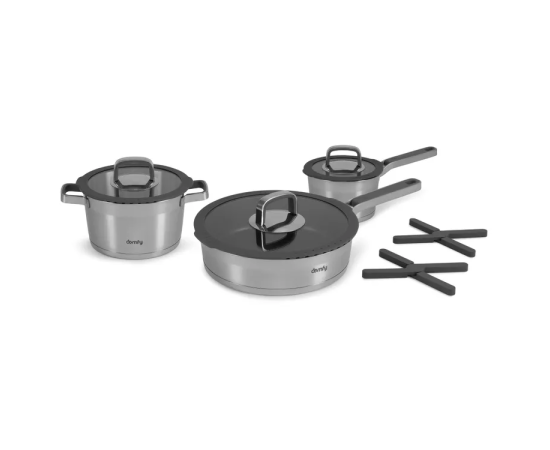 Красивый и функциональный набор посуды из нержавеющей стали Domfy Home Grigio из 8 предметов позволит готовить быстро и с удовольствием, а великолепный дизайн посуды идеально впишется в интерьер современной кухни.