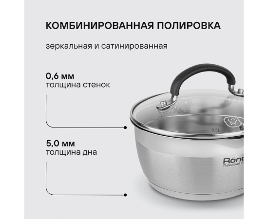 Материал: нержавеющая сталь 18/10. Толщина стенок: 0,6 мм. Толщина дна: 5,0 мм. Материал крышки: комбинированный: термостойкое стекло и нержавеющая сталь. Преимущества: комбинированная крышка из термостойкого стекла с ободком из нержавеющей стали для удобного слива жидкости (2 диаметра отверстий).