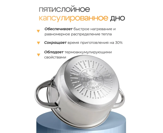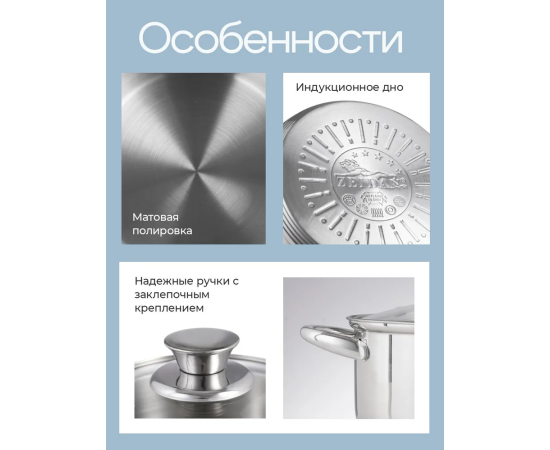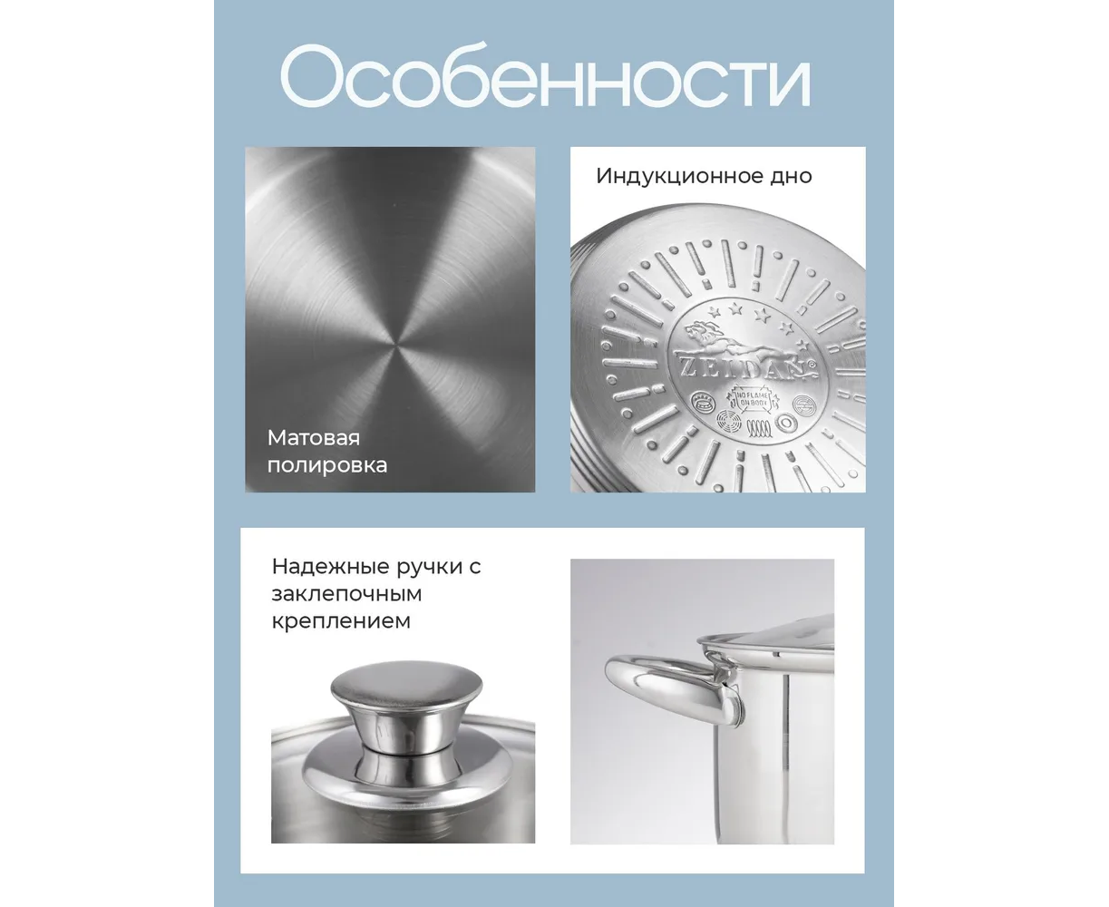 Особенности посуды: Двойные стенки, Крышка в комплекте, Мерные деления, Ненагревающиеся ручки, Можно мыть в посудомойке, Жаропрочная, С толстым дном, Профессиональная посуда