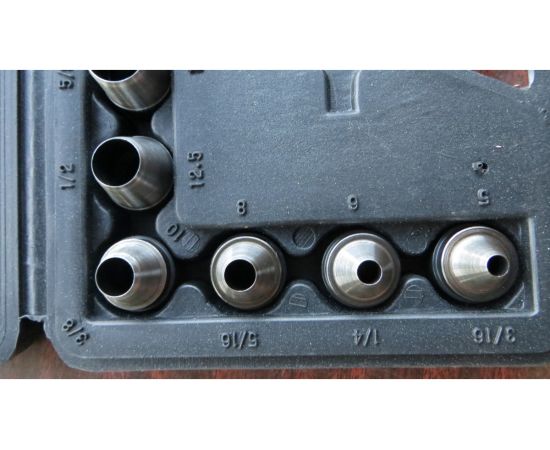 комплект содержит девять сменных приспособлений различного диаметра;