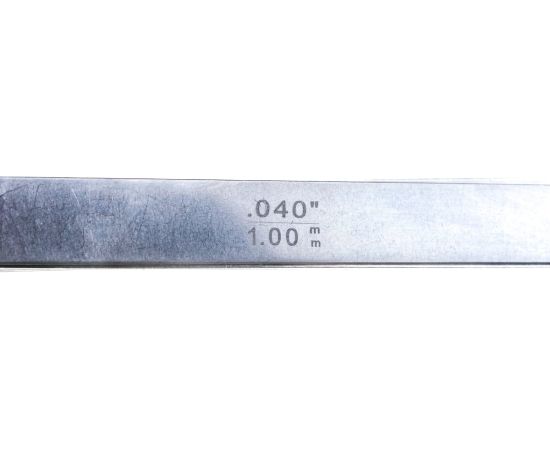 Измерительные щупы с двойной маркировкой (в миллиметрах и дюймах) для удобства считывания показаний, изготовленные из упругой стали с четкой гравировкой размеров.