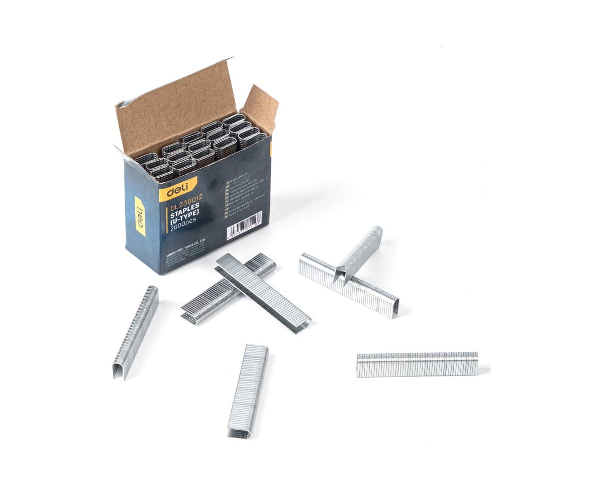 Набор скоб для степлера DELI тип U, DL238012 2000 шт. 98422 предназначен для мебельных и строительных степлеров. Скобы изготовлены из высококачественной нержавеющей стали. Размеры скоб 12х6,3х1,2 мм.