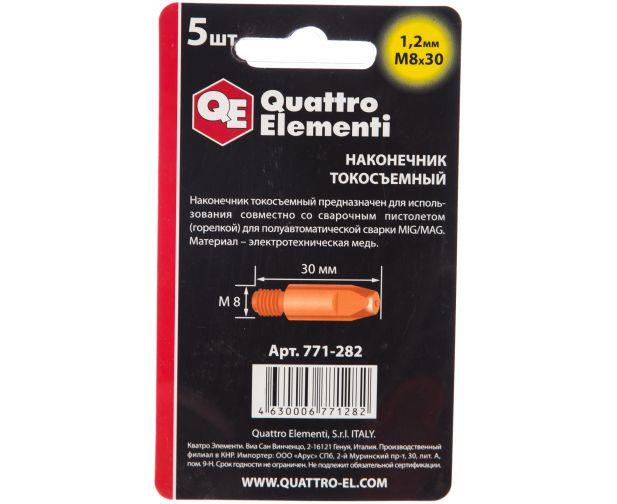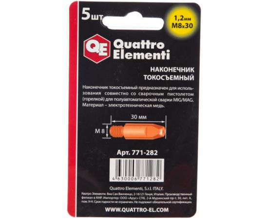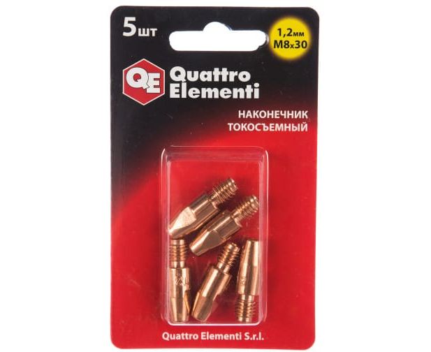Наконечник токосъемный QUATTRO ELEMENTI 771-282 M8x30 1.2мм, 5шт в блистере, для горелки полуавтомата