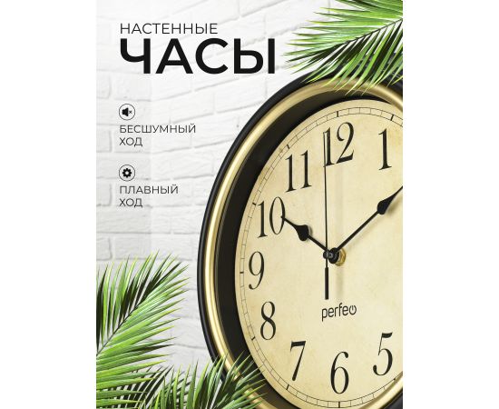 Настенные часы Perfeo "PF-WC-022"(С1) круглые д. 30 см, коричневый корпус / бежевый циферблат