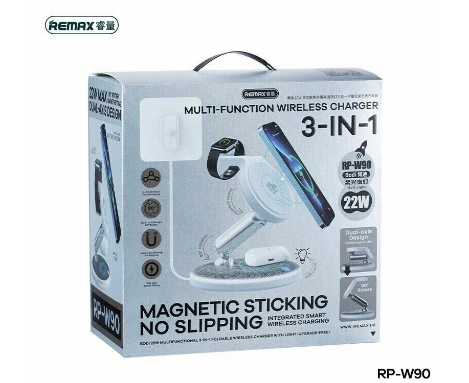 Настольное беспроводное ЗУ REMAX Bodi 22W Multifunctional 3-in-1 Foldable Wireless Charger with Light RP-W90 (белый)
