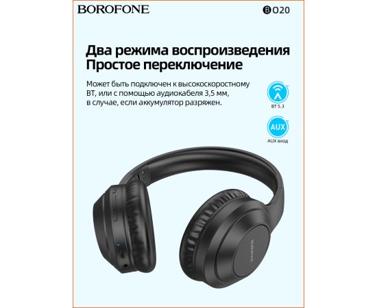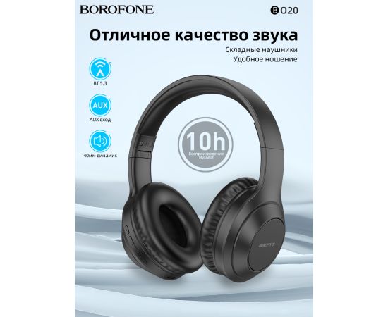 Наушники bluetooth полноразмерные BOROFONE BO20 Player BT (чёрный)