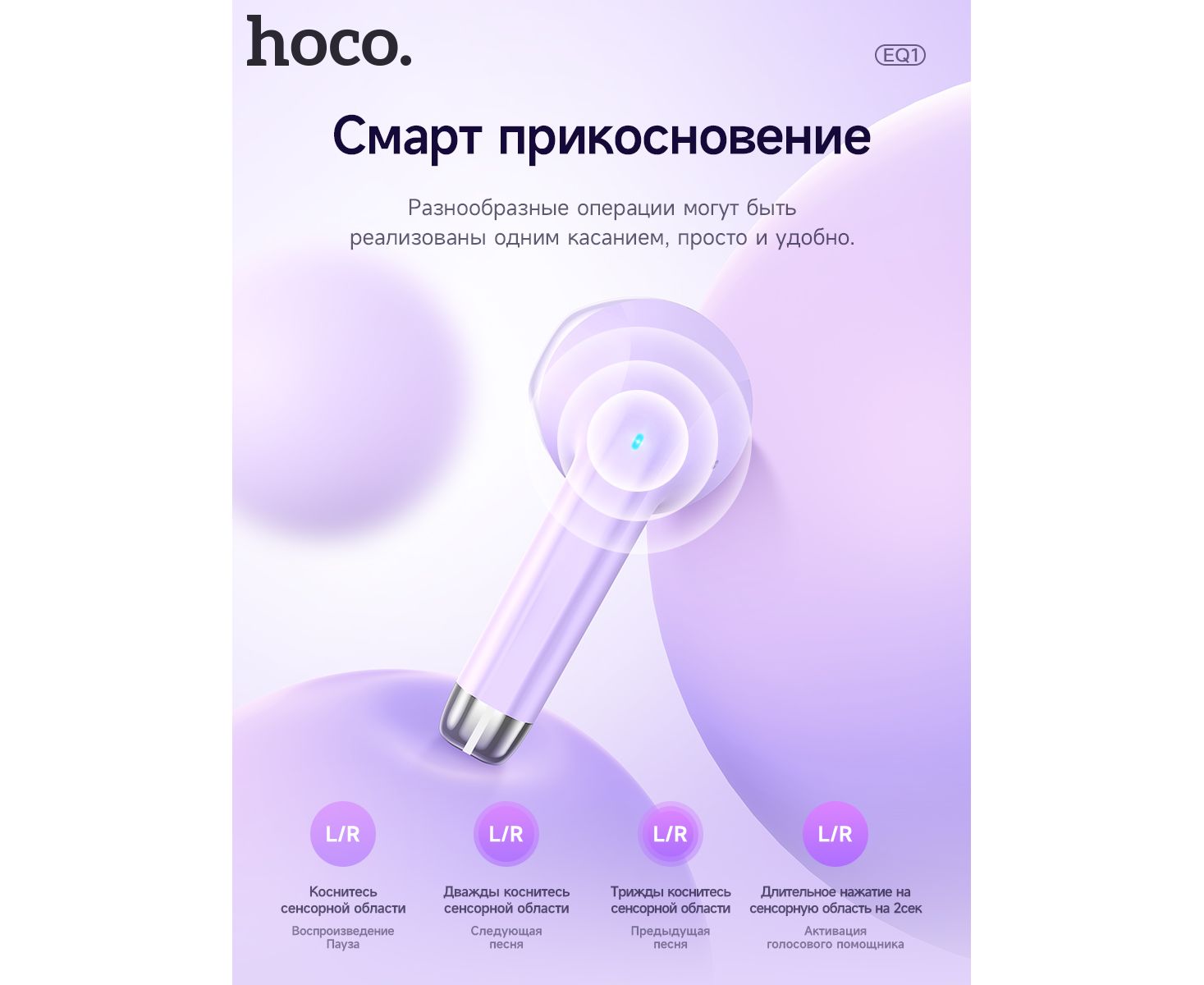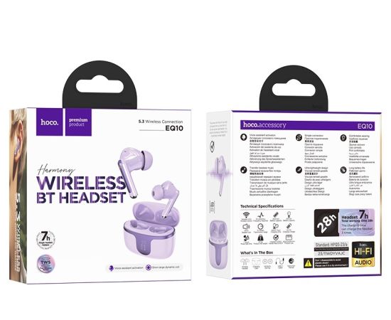 Наушники bluetooth HOCO EQ10 Harmony true wireless (фиолетовый)