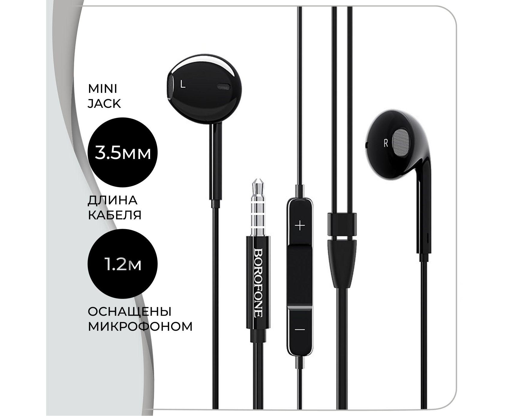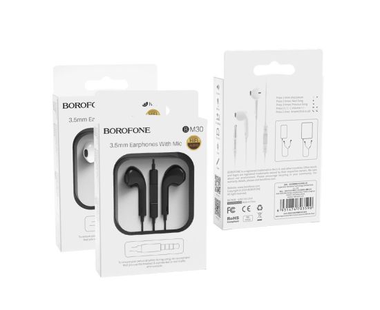 Наушники BOROFONE BM30 Original series wire control earphones with mic (чёрный) (акция)