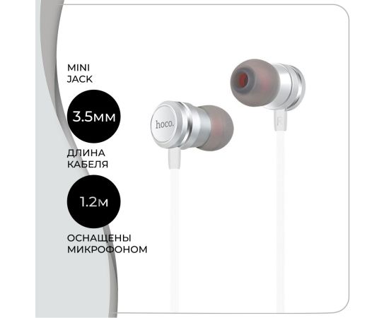 Наушники HOCO M16 Ling sound metal with mic (серебро)
