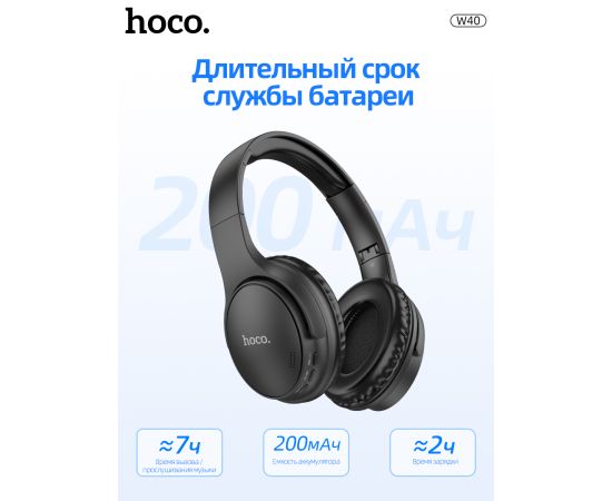 Наушники полноразмерные bluetooth HOCO W40 Mighty BT (черный)