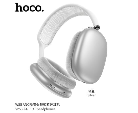 Наушники полноразмерные bluetooth HOCO W58 ANC BT (серебро) (акция)
