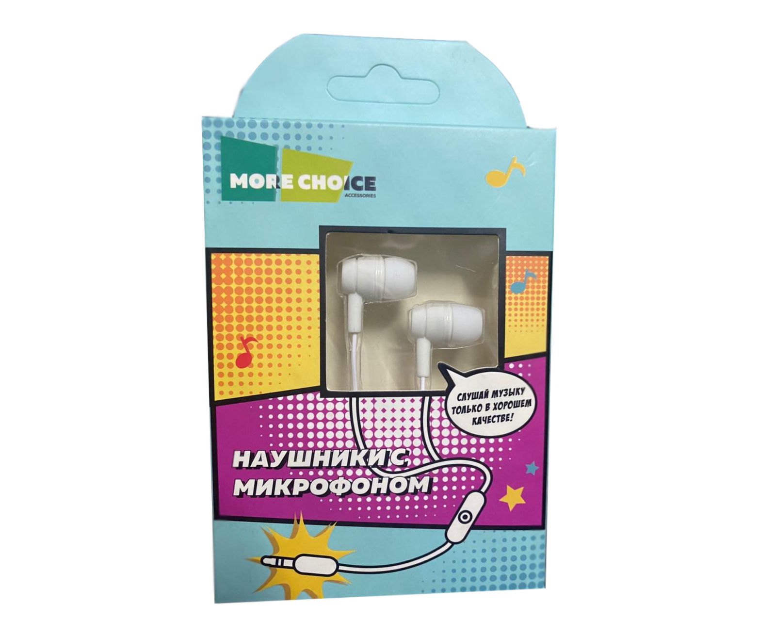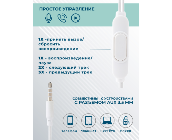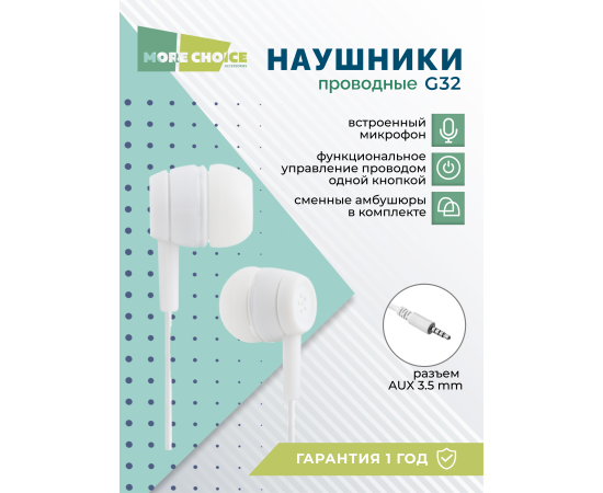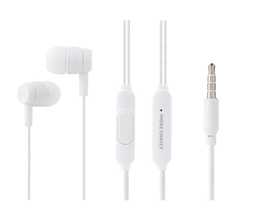 Наушники вакуумные AUX разъём с МК без рег.громкости длина 1.2м More Choice G32 (White)