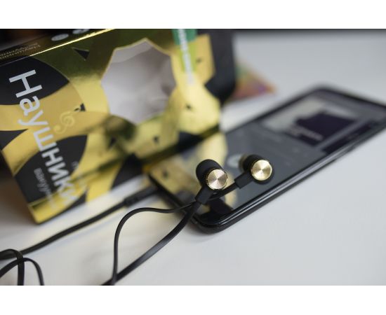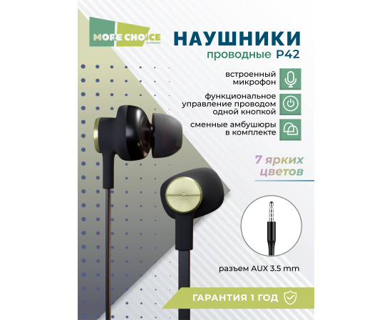 Наушники вакуумные AUX разъём с МК без рег.громкости длина 1.2м More choice P42 (Black Gold)