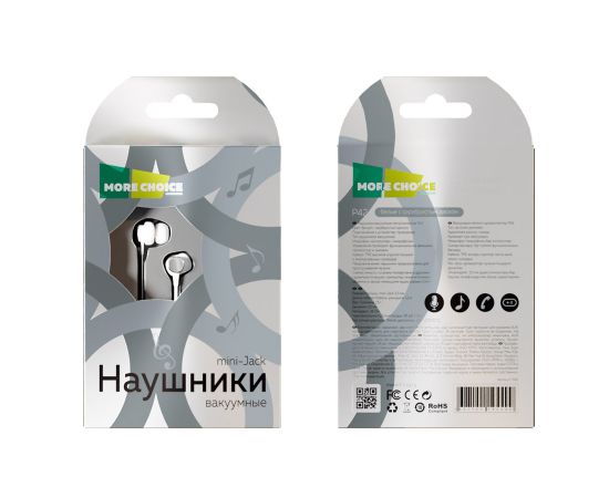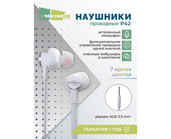 Наушники вакуумные AUX разъём с МК без рег.громкости длина 1.2м More choice P42 (White Silver)