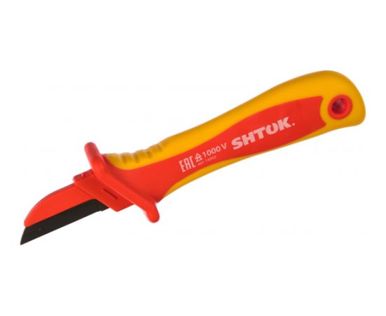 Нож для снятия изоляции SHTOK 1000В VDE 14002 оснащен частично изолированным лезвием. Обрезиненная рукоятка обеспечивает удобство работы и надежность захвата ножа. Возможно использование данного инструмента для работ под напряжением.