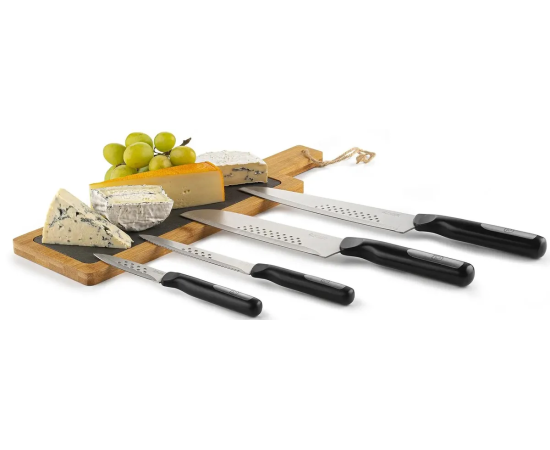 Материал клинка: высококачественная нержавеющая сталь X30Cr14. Материал рукоятки: комбинированная: ударопрочный пластик и нержавеющая сталь. Преимущества: лезвия ножей с эффектом anti-stick - продукты не прилипают к лезвию в процессе их нарезки. Использование: не подходит для посудомоечной машины.