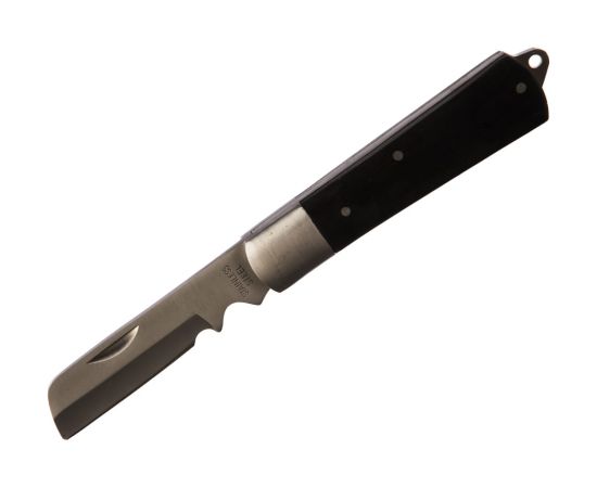 Нож монтерский КВТ НМ-10 77663 - складной инструмент с прямым лезвием и дополнительной зоной для зачистки жил от окисной пленки. Применяется для удаления изоляции и оболочки кабелей. Лезвие ножа выполнено из нержавеющей стали твердостью HRC 51-55, что гарантирует долгий ресурс работы инструмента. Для удобства хранения и транспортировки предусмотрено отверстие на рукоятке для крепления карабина.