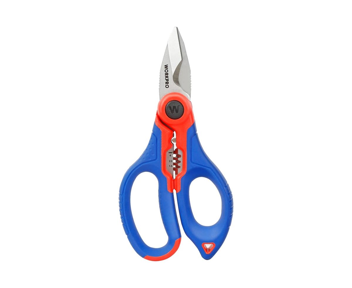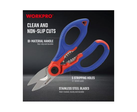 Ножницы электрика WORKPRO WP294003 имеет 5 отверстий для зачистки 10-18AWG