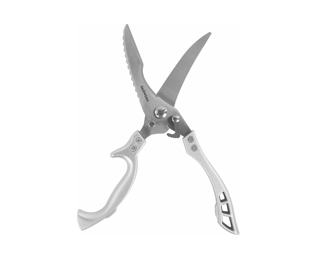 Ножницы-секатор кухонные DASWERK, 260 мм – это идеальное решение для тех, кто ценит функциональность и надежность на кухне. Эти кухонные ножницы из нержавеющей пищевой стали толщиной 4 мм обладают зазубренными лезвиями, позволяющими легко справиться с разделкой и чисткой рыбы, мяса птицы, нарезкой овощей и зелени.