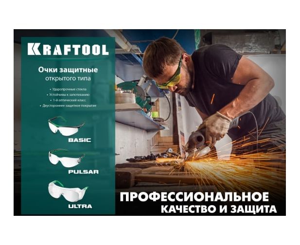 Преимущества защитных очков KRAFTOOL Basic прозрачные 110317