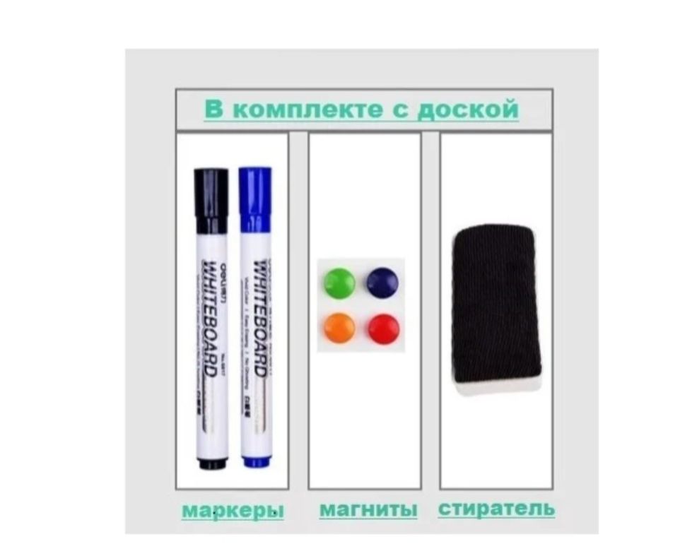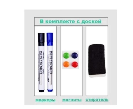 Комплектация 2 маркера, 4 магнита, полка для маркеров, щетка