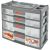 Конструкция органайзера предусматривает наличие четырех ящиков, изолированных друг от друга, каждый из которых дополнительно содержит перегородки. Это позволяет хранить крепежные изделия по размерам, раскладывая их в секции, которые наиболее подходят. В верхней части вертикального органайзера находится ручка, позволяющая удобно переносить его. Органайзер обладает размером 12" и предусматривает наличие замков, предотвращающих случайное открывание секций. Съемные лотки позволяют удобно разложить мелочи, а благодаря съемным перегородкам вы сможете использовать внутреннее пространство, как вам удобно.