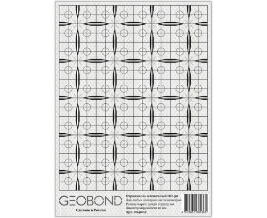 Отражатели Geobond ОП-50 имеют оригинальную форму, которая позволяет автономно использовать марку либо целиком (50 х 50 мм), либо 1/4 ее часть (25 х 25 мм). Это создает дополнительные удобства, т. к., приобретая всего один тип пленочного отражателя, пользователь имеет возможность, оптимально подбирать необходимый размер марки в зависимости от расстояний, на которых планируются измерения. К достоинствам разметки относятся бисекторные и контрбисекторные штрихи различной толщины, значительно упрощающие наведение на них, а также повышающие точность взятия углового отсчета при работе на больших расстояниях. Разметка пленочного отражателя нанесена специальной водостойкой краской, выдерживающей воздействия спирта и бензина, а сама пленка имеет гарантированный срок службы при уличной эксплуатации 10 лет.