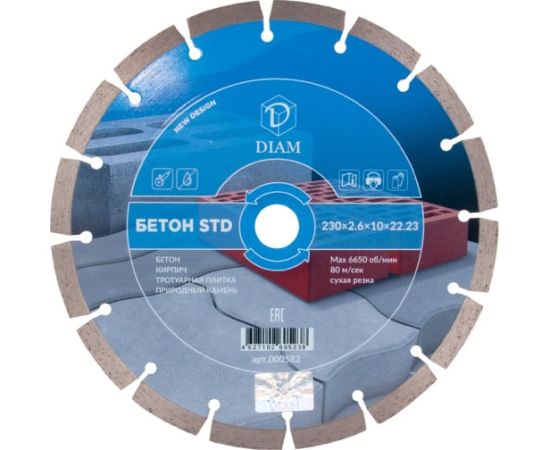 Отрезной круг Бетон Diam STD 000582 230*2,6*10*22,2