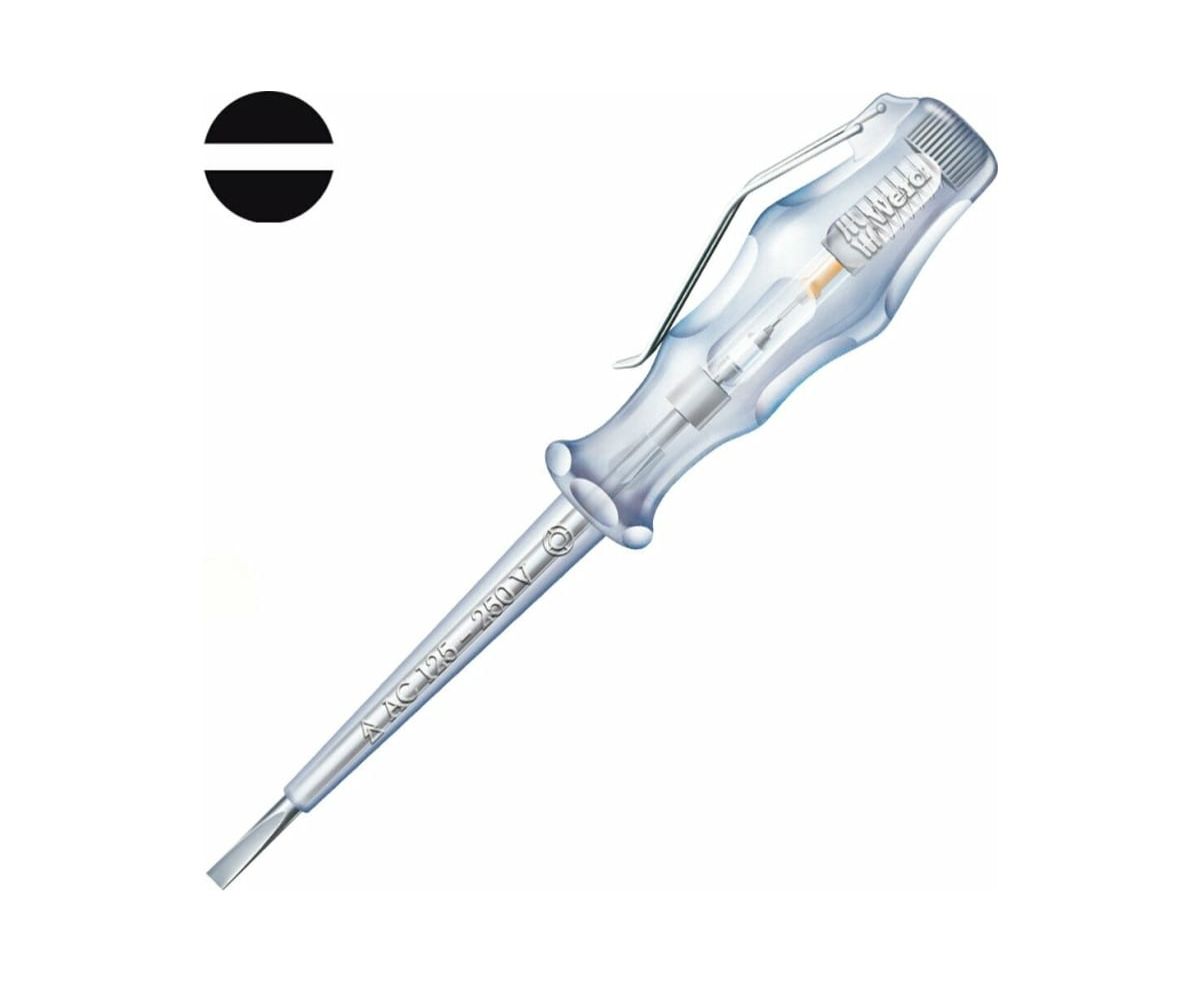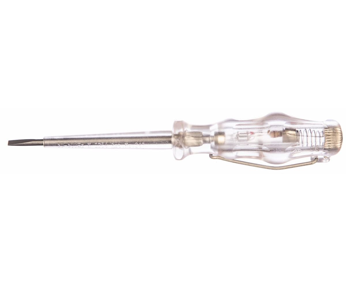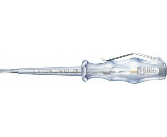 Отвертка-индикатор WERA 247 WE-005655 оснащена прозрачной ручкой с индикатором внутри, который показывает наличие или отсутствие тока.