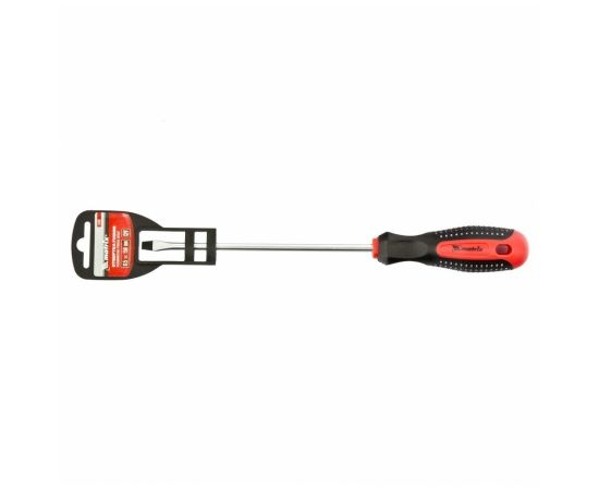 Отвертка применяется для откручивания/закручивания винтовых соединений, где используется профиль - прямой шлиц. Инструмент оснащен удобной трехкомпонентной ручкой, не позволяющей отвертке выскользнуть из рук, а также прочным стержнем из легированной хромованадиевой стали, которая увеличивает рабочий ресурс изделия.