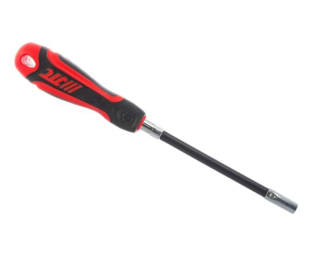 Отвёртка с гибким стержнем предназначена для работ с шестигранным крепежом и хомутами на шлангах. Широко используется в местах с ограниченным доступом.