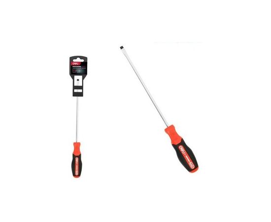 Отвертка шлицевая DELI DL3449 SL6x150мм сталь S2, матовый стержень, двухкомпонентная прорезиненная рукоять