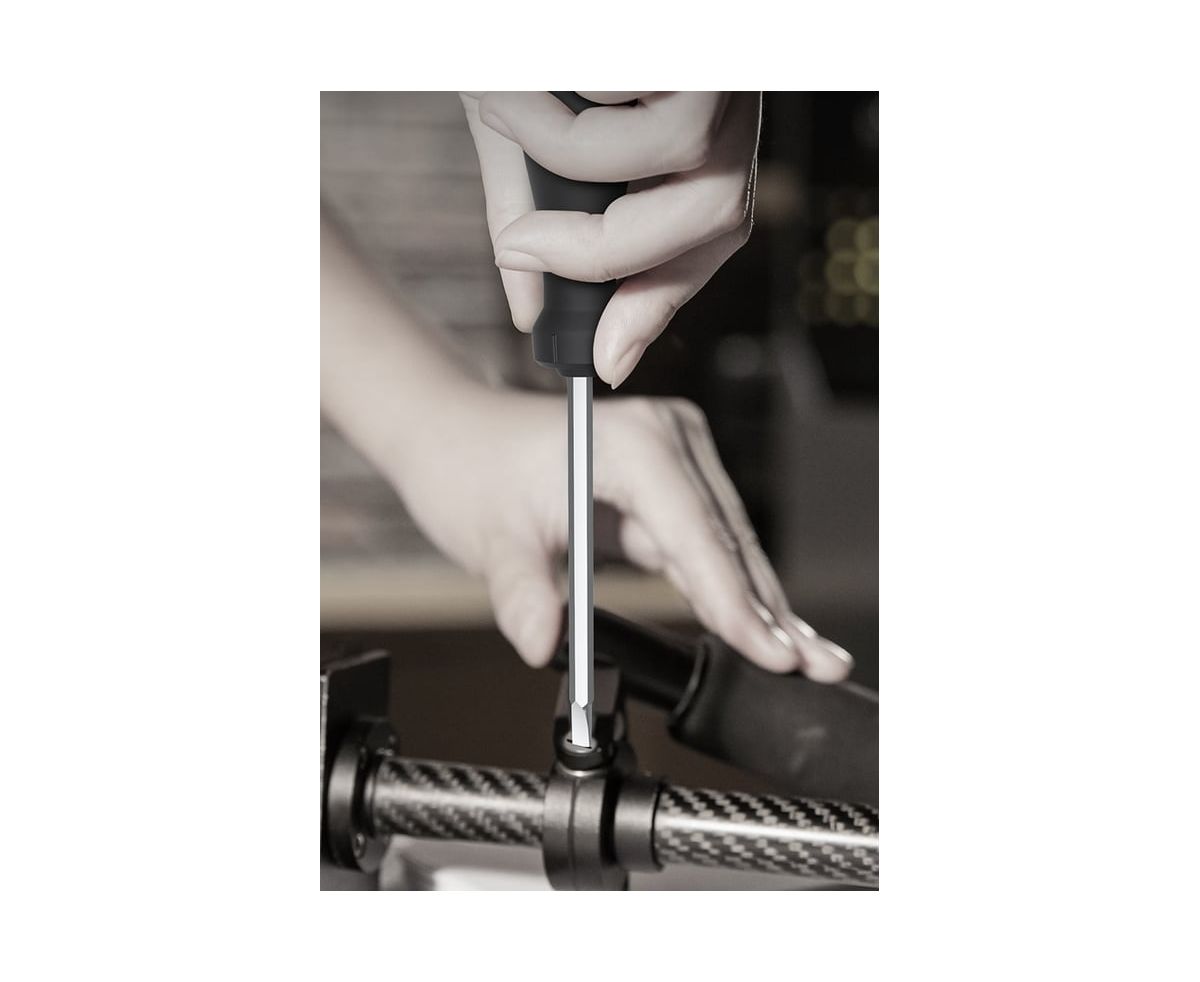 Шлицевая отвёрткаDeliHomeSeriesGrayHT1103C используется для работ с резьбовыми соединениями в процессе ремонта или монтажа.