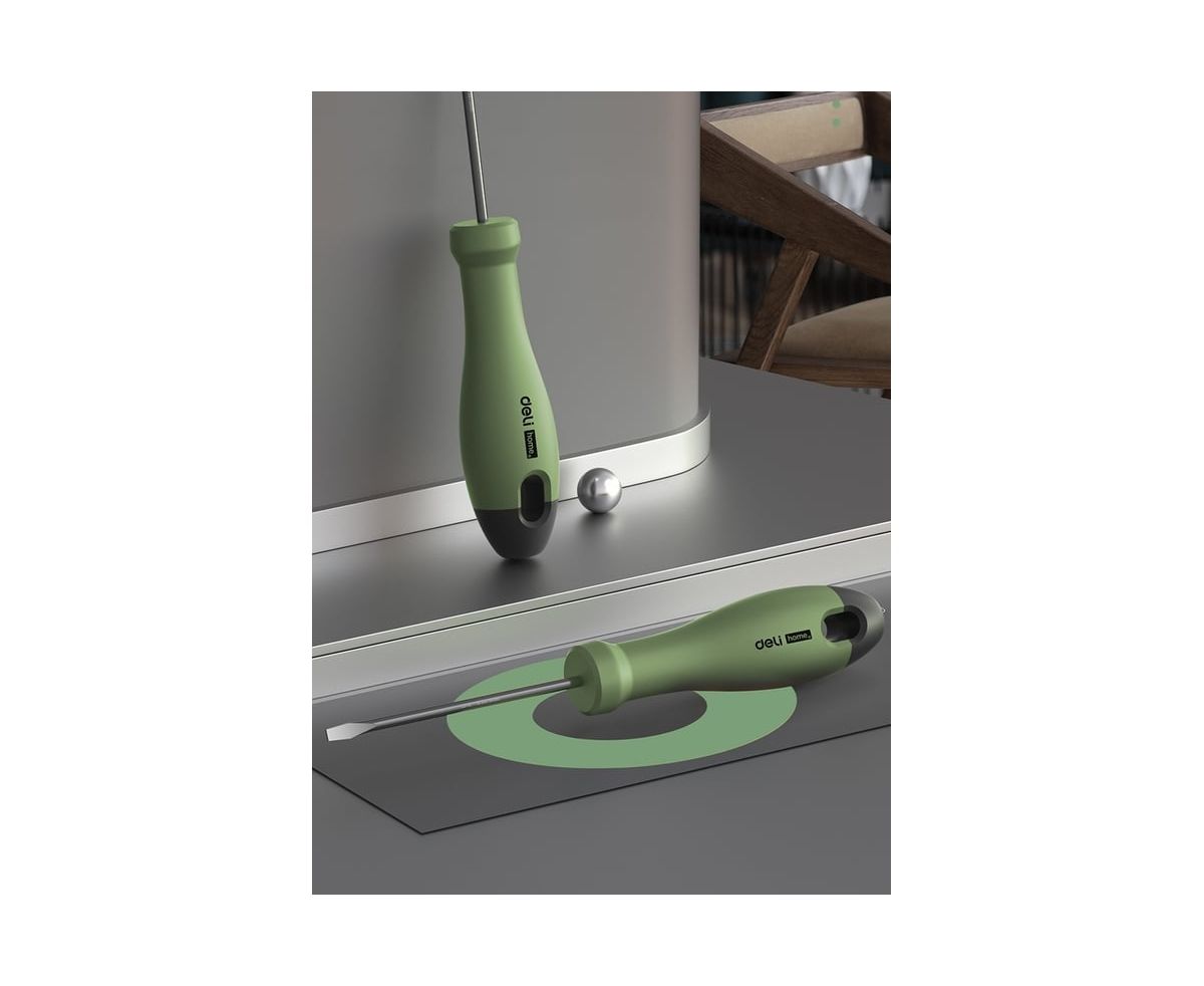 Отвертка шлицевая Deli Home Series Green HT1103L 3x75мм Эксклюзивный дизайн, рукоятка из высококачественного софттач пластика